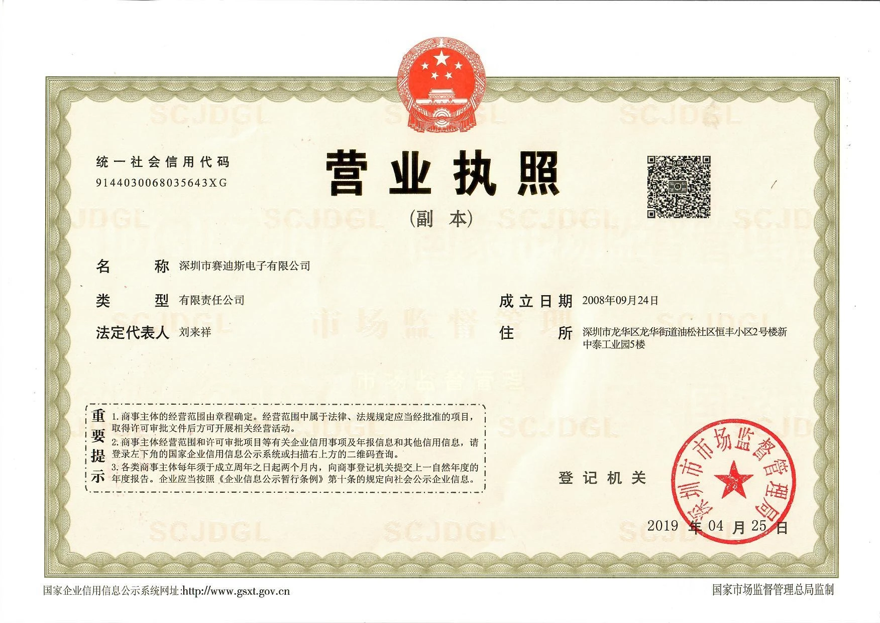 Company Name : Shenzhen Saidisi Electronic Co., Ltd.